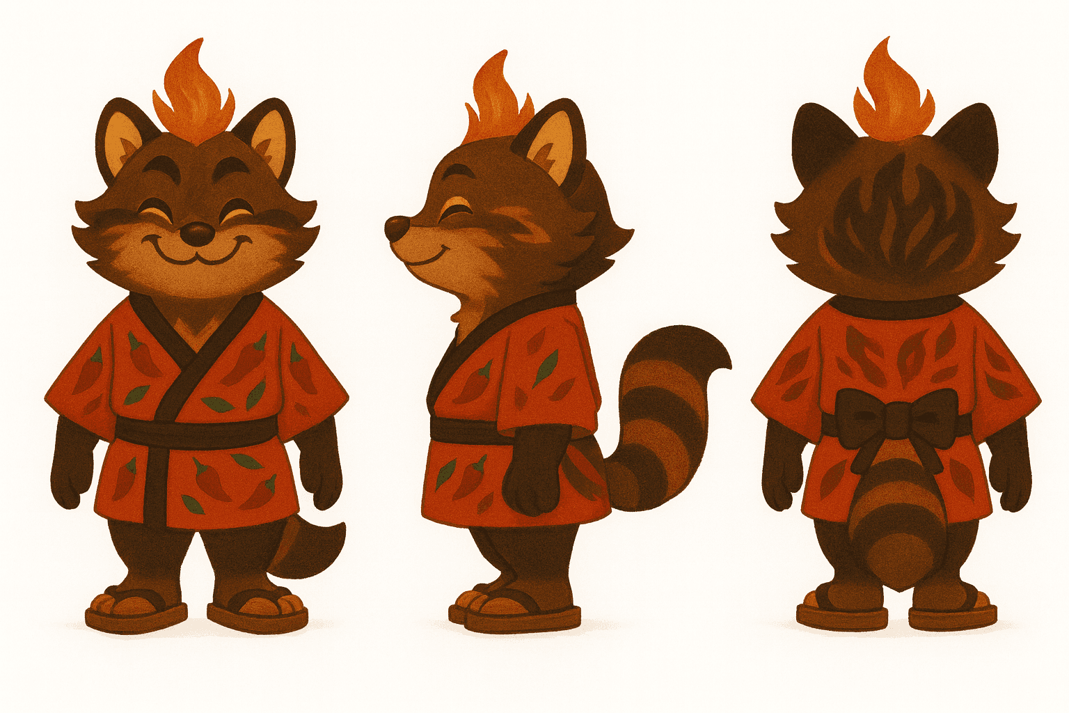 Hinoki Tanuki, surnommé « Queue qui Flambe », est une légende culinaire ambulante de TaleMe. Artisan cuisinier et marchand, il a bâti sa renommée grâce à sa gamme de sauces piquantes artisanalesQueue qui Flambe™, qui électrisent aussi bien les papilles que l’imaginaire. Avec son kimono rouge couvert de piments et sa mèche enflammée toujours vive, il transforme chaque dégustation en véritable spectacle.