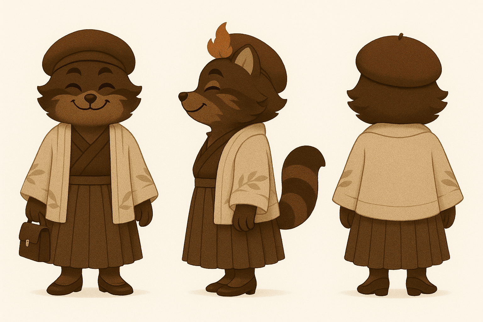 Momo Tanuki est la cheffe de la boutique Queue qui Flambe™, où elle gère les ventes avec une rigueur aussi douce qu’inflexible. Derrière son sourire permanent et son béret prune, elle est l’âme commerçante de la marque, organisant stocks, clients et apprentis avec une efficacité presque redoutable.